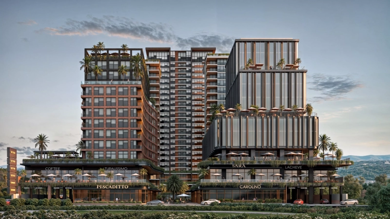 - La primera fase, estratégicamente ubicada en la parte frontal del proyecto, da un cálido recibimiento con un espacio comercial de dos niveles. Con una presencia impactante hacia la vialidad principal, este podio comercial alberga boutiques, restaurantes y servicios que brindan una experiencia única a los visitantes. Sobre este podio, se elevan majestuosas una torre residencial y una torre de oficinas, creando una sinergia entre estilos de vida y entornos laborales.